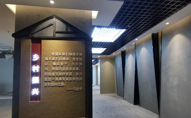 即将峻工的省委党校党性教育教学基地,进入装修尾声(工程标志的名称是“党的作风建设教育实践基地展示厅布展”)