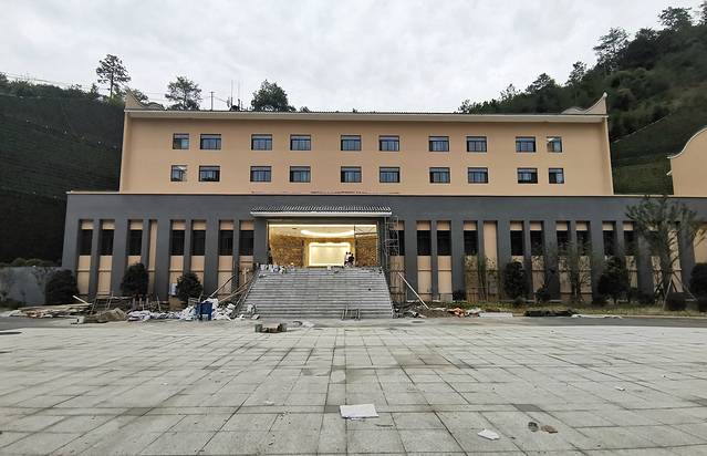 党校的选址真用心,位于古村与新村之间的弯道处,劈山索地,架桥通路,从古村落远远就能望见这个宏伟建筑