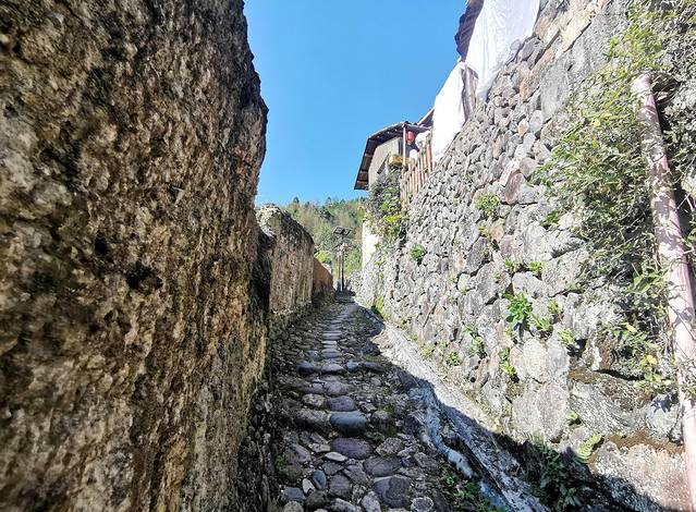 下党新村,在山与溪之间只能建造二排房子,形成了很长的“合掌街”