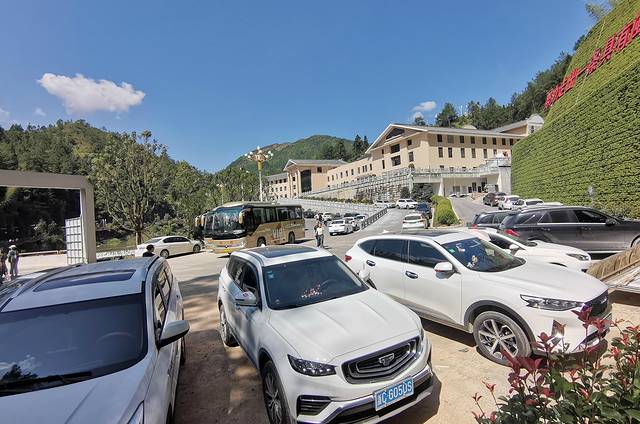上午十点,党校停车场已经停满了今天进村的游客车辆,有两部是旅游大巴