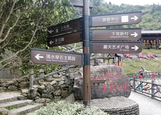 古村里的路口交叉处,路标齐全,指引着游客的游玩路线