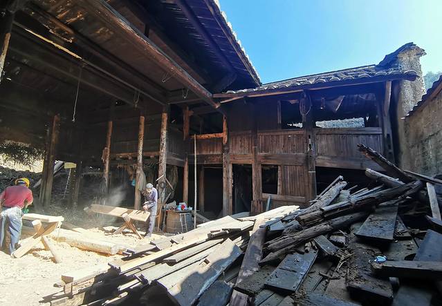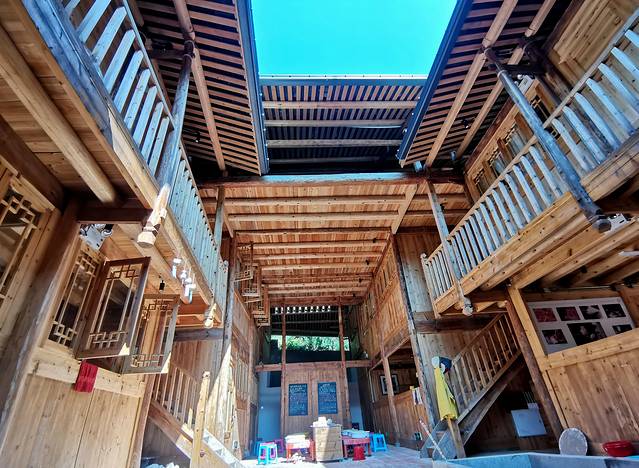 继续顺着古墙古道前行,终于找到了。楼上还晒有衣物,看来有游客入住