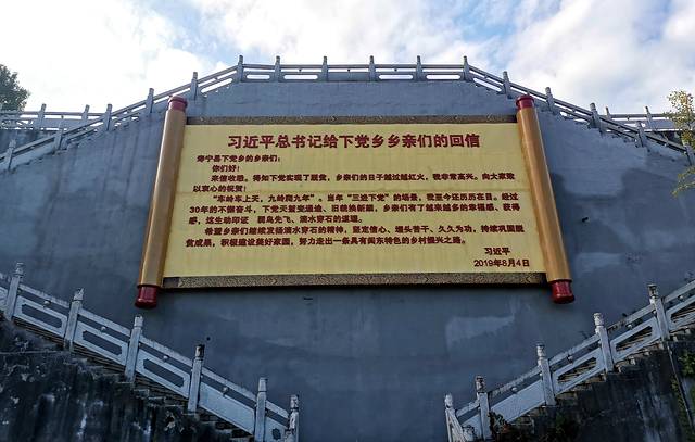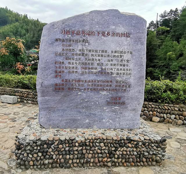 鸾峰桥的附近,竖立着刻有书记给下党乡亲回信的石碑