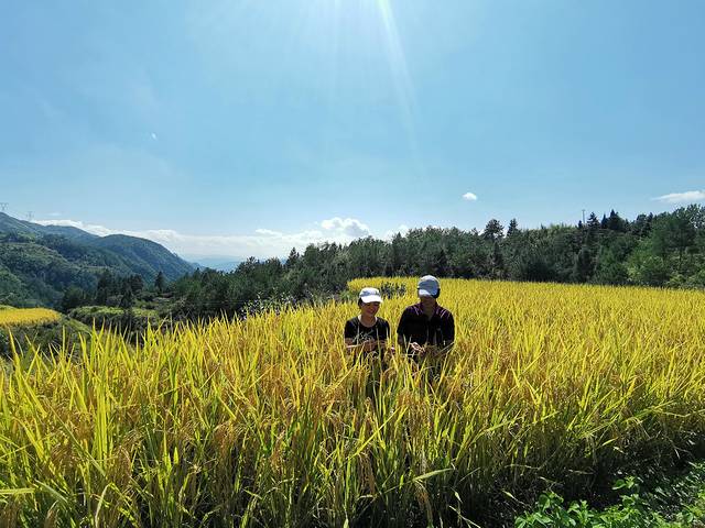 沿途的山间梯田,金灿灿沉甸甸的晚稻成熟待割,去分享一下丰收的喜悦吧