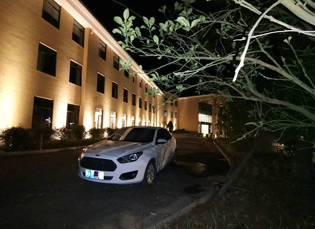 床车夜宿党校主楼前,装修师傅住在楼内一二两层(分别拍于夜晚十点与次日早晨七点)