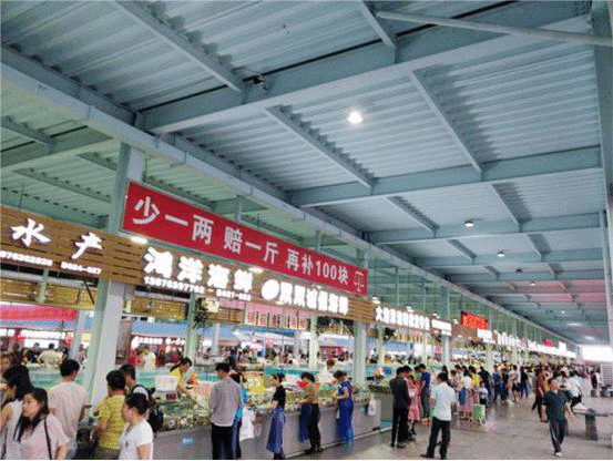 到店之后,哇好多人,看这横幅拉的,好像谭咏麟还来吃过呢,生意相当火爆啊!然后我们让老板拉着小推车就带着我们去买海鲜了!