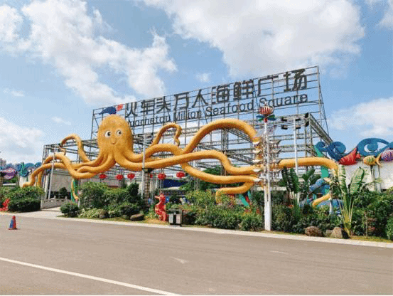 丁村万人海鲜广场项目按4A级景区标准规划建设,总占地面积160亩,总投资1.3亿元。广场设有海鲜平价超市、游客自助用餐区、集散广场、生态停车场、海洋文化展示馆以及儿童游乐场等配套设施,其中共有海鲜加工档位88家、小吃档位40家、海鲜零售档位150家。