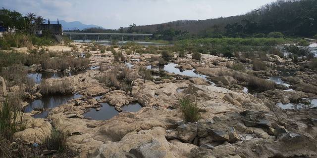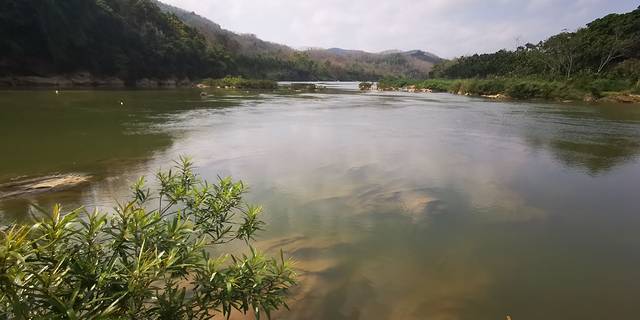 这分布在海南琼中境内万泉河上游的石臼群,是我国乃至全世界都罕见的地质奇观,其数量之多,体形之大,造型之绝妙,水流之变幻,令人叹为观止。 可惜!兴匆匆而来,沿着路牌而行,却只见河水不见石,更谈不上石臼,更没有”群“了!这可恶的媒体,不负责任瞎报谎报!不死心,问道一户人家说:涨水了,把石臼群全淹了,如果是枯水的时候,真能看见,也的确是”比比皆是“呦!