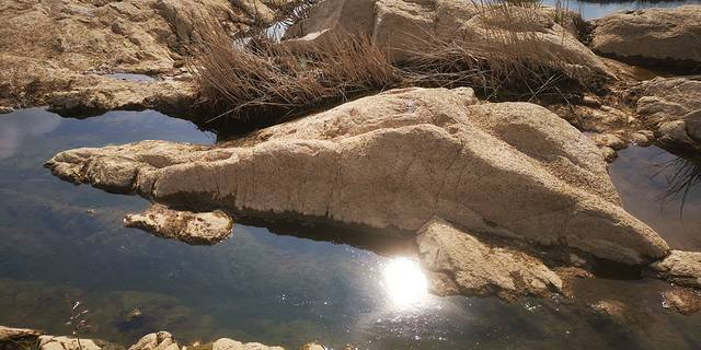 大年初五旅行第一站:乘坡河石臼群(起水淹没,没有目睹到盛况,遗憾!)