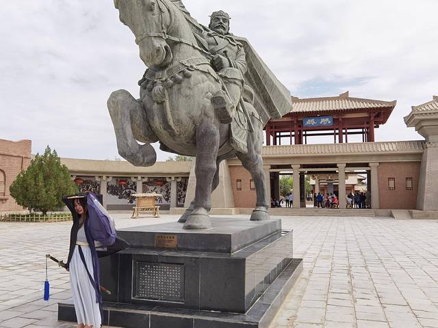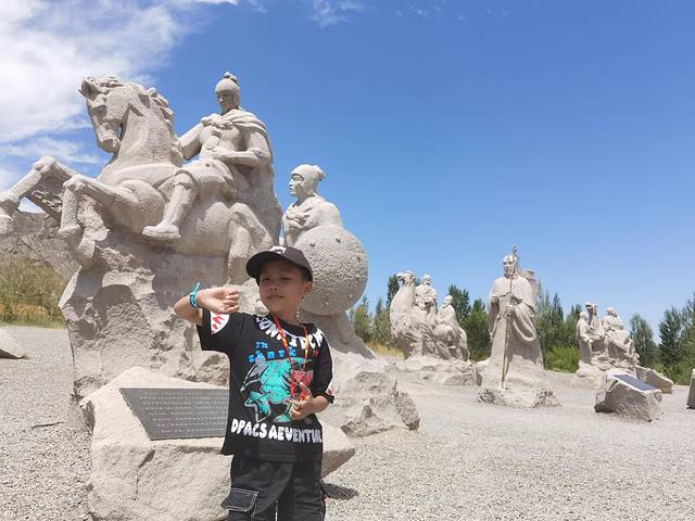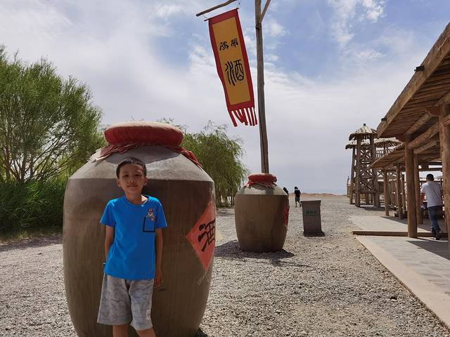 一进入阳关,就看到出使西域的张骞的石像,然后会参观一个博物馆,博物馆里面是一些汉朝时候的耕作用具,兵器,马车等的展示,从博物馆出去之后就坐车进入景区里面,观看阳关遗址,团费包含观光车费用,但这里可以加20元坐驴车进去。