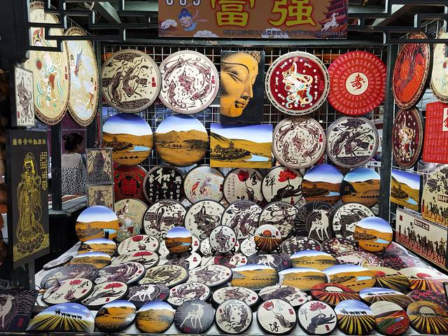 鸣沙山是一个沙漠,印象里沙漠都是很热的,害怕像昨天那样被烈日暴晒,所以我们打算傍晚时候才出发,于是我们便优哉游哉地先在附近逛一下,吃点东西再动身。我们走进了沙洲夜市,原来白天进去又是另外一个样。晚上看到的人来人往,热闹非凡的情景不再,几乎百分之九十的店铺都关门了,白天的沙洲夜市跟普通的巷子没什么区别,人影都不多一个。在这里没找到吃的我们只好出去大马路,在肯德基里面坐了一个下午。
