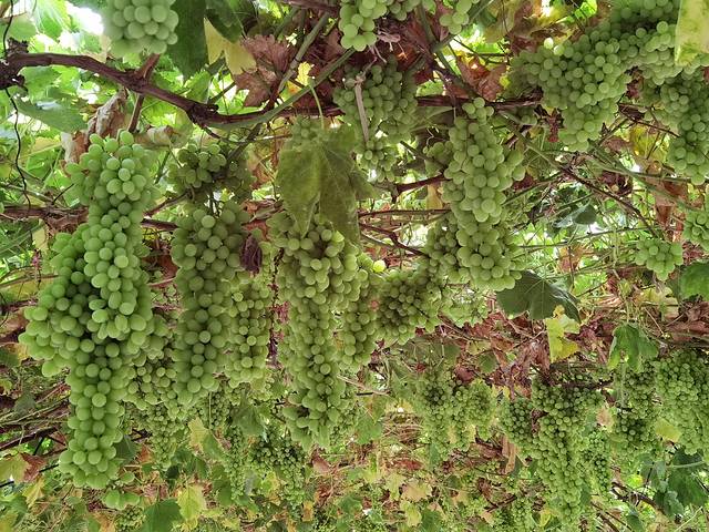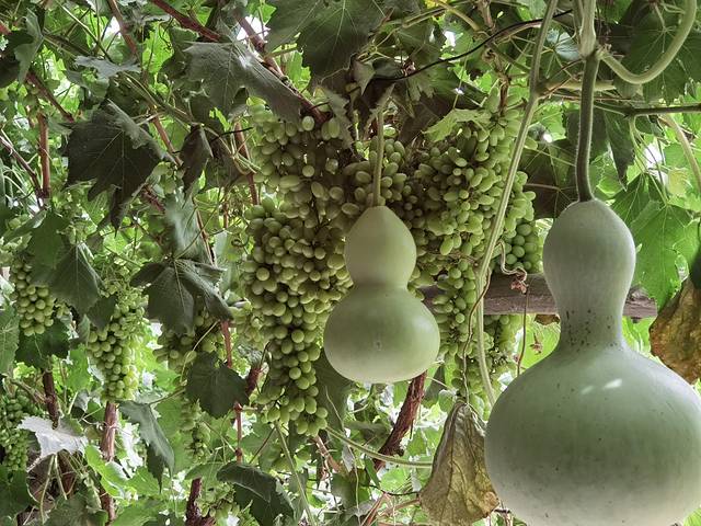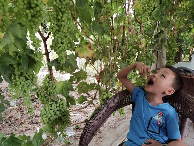 观赏完西千佛洞之后,差不多到午饭时间了,导游先带我们去一个农庄吃饭,这个农庄有点像葡萄沟,里面种满了青葡萄,还有一些葫芦瓜,导游说我们可以摘几颗葡萄吃,但不要太过分摘很多就可以。葡萄架下摆了很多饭桌,我们便各自用膳,本团不包午餐,这里的菜都很贵,明显是跟旅行团挂钩针对游客的,但既然来了也只能随便点两个小菜进餐了。