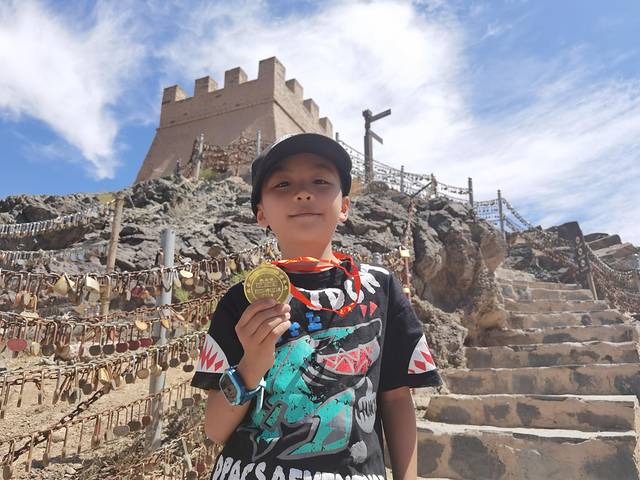 游览悬壁长城是一边上,另一边下的,不用走回头路,沿着石梯一直走便是,全程走完大概也是一个小时左右。在长城最高处拍照也挺好看的,儿子也第一次当了“好汉”。