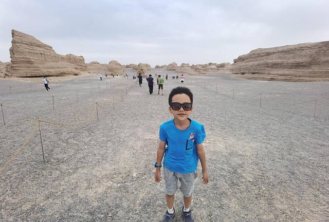 这个景点是今天所有景点里面最漂亮的,本来经过一天马不停蹄的奔波和烈日的暴晒之后,儿子都很疲惫了,来到这里后本不想下车的,但在车上看到窗外的风景也被吸引住了,一身的倦意马上消失殆尽。不要说他这么小,连我也没见过如此奇特的景色,这里的景观是历经亿年才形成的,十分之震撼,特别是最后一个观景台看到的大型雅丹地貌石山群,唤作“西海舰队”,其场面简直令人为之一震。