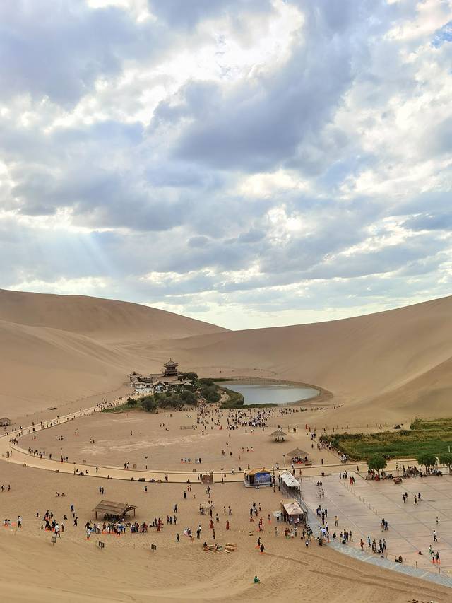 一直坐到下午3点多左右,发现今天的太阳其实也不算猛烈,我们便提早出发,坐公交车前往鸣沙山。在倒数第二个站,会经过“雷音寺”,不知是不是西游记唐僧取经的地方,我们也没下车,继续前往鸣沙山。