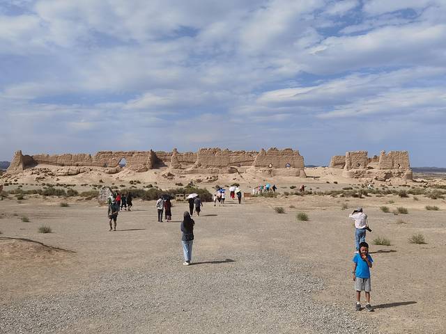 进入景区,看到的都是黄土地,几千年前跟现在,这个地方可能都是这种颜色,在这里给人的感觉就是两个字:荒凉。不过对于来自大城市的我们,来这里感受一下大漠的味道,了解一下历史的痕迹,也是一种从来未有过的人生体验。身处荒漠之中,人类是渺小的,无助的,同时也可让你暂时抛开现实生活中的烦恼,好好享受一下无忧无虑的感觉。