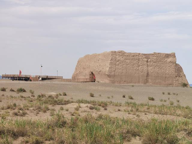 这就是玉门关遗址,现在只剩一个四方的大土堆,可入内参观,旁边还有一个观景台。