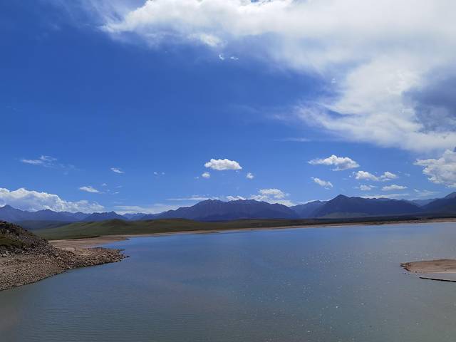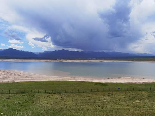 鸾鸟城边的鸾鸟湖,远处就是祁连山,这里风光独好。