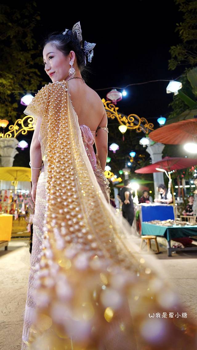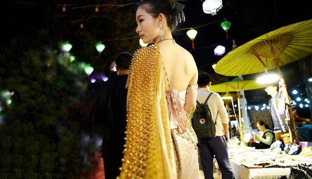 在夜市,最亮丽的风景线,大概就是穿着民族服饰逛夜市的女孩们。说实话,因为穿民族服饰的人太多,以至于我刚来夜市时,以为她们是招揽顾客的店员... ...。