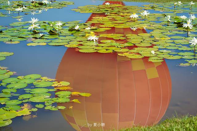 进门没多久,就看到树林掩映间,一颗巨大的橘红色热气球冉冉升起,在无云的天空蓝背景下十分醒目。