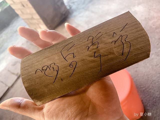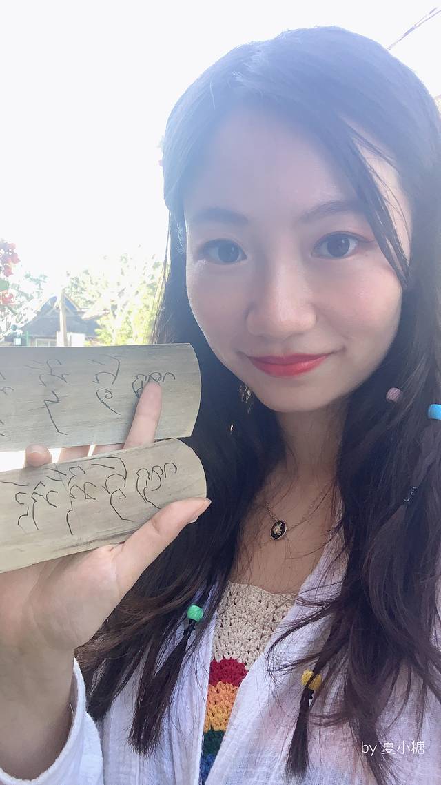先选好想写的字,爷爷会示范给我,如何在贝叶上写字,要我依样画葫芦。他还搬来一个小黑板,用粉笔写下对应的傣语,一笔一划,好像在教幼儿园的小朋友认字。