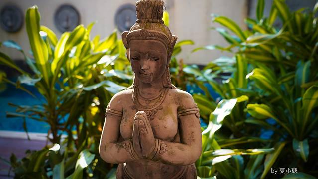 几间寺庙比邻而坐,周围绿植丛生,加上热带建筑的镂空通透,哪一个角度看过去都美不胜收,颇有意境。虽说许多细节不够精致,但胜在元素多样,整体华美,总让我有眼睛不够用的感觉。