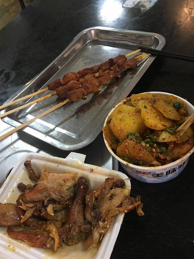 就近原则,车站外吃的米线和快餐。瞧这品相,这米线应该不是正宗的。