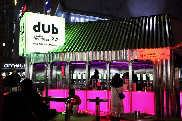 dub精酿酒吧采用金属工厂风的装修风格,白天金属房间内是N+ COFFEE的手冲咖啡,作为 重庆 首屈一指的咖啡品牌,N+ COFFEE与dub的结合可谓是天造地设的一对,在寸土寸金的九街,N+ COFFEE也为九街饮品业态增添了一分色彩。到了夜晚,灯红酒绿的九街格外迷人。霓虹灯下的dub开启了精酿啤酒之旅,各式各样的精酿啤酒通过机械端口,由杯底升上来,增添了一丝黑客帝国般的科技神秘感。口感纯正,口味多样的精酿啤酒也成为了时尚人士的宠儿。九街的魅力不仅仅在于喝酒,更在于喝酒的人、物、景,当这些元素组合在一起,才会形成更加传奇的九街。