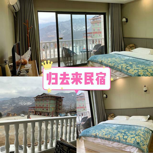 达瓦更扎景区门口和 神木 垒景区门口都有住宿;可根据自己的需求安排;有很多客栈打造的星空房 ,也可以自己露营 ,这个季节淡季,也没必要去住星空房,夏天可以去体验一下,我们选择的达瓦更扎归来民宿,阳台大床房163元/晚,还是很便宜含2人早餐,(早餐就是2碗面条,老板亲自煮的,自己调料)房间整洁度、空调、热水器都还不错;阳台上可以看到对面的雪山;