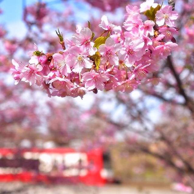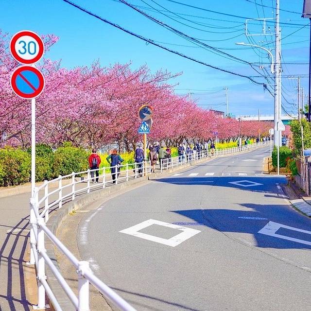 每年二月中下旬开始,伊豆热海地区,河津樱关东地区第一批早樱的集聚地。从寒冷的冬天感受到第一丝温暖。再加上油菜花的助力,粉黄蓝三色的完美结合。美不胜收。一般二月中下旬恰逢春节,如果有机会来日本过年的话,选择东京地区,可以顺便来这里看看,定不会让你失望。