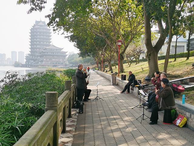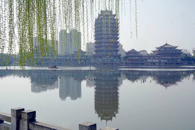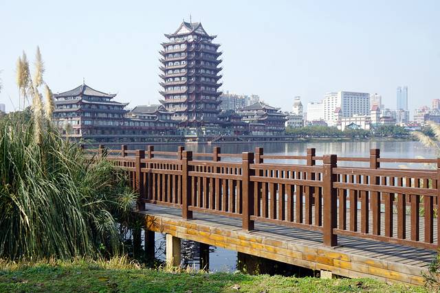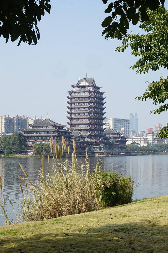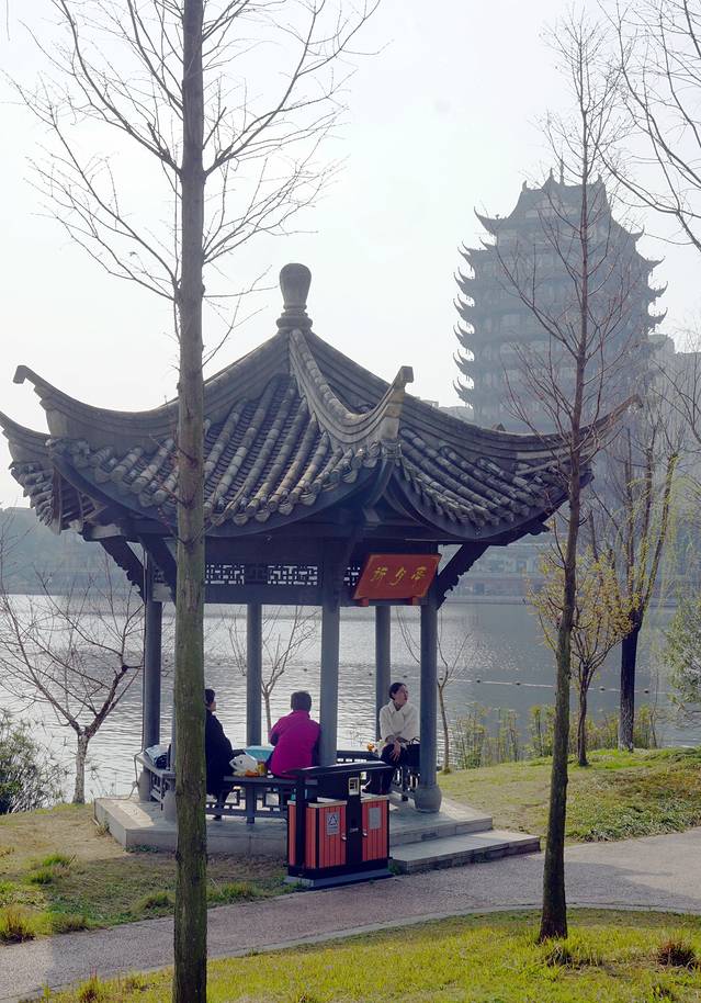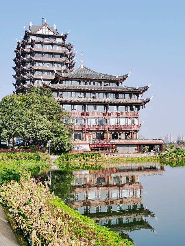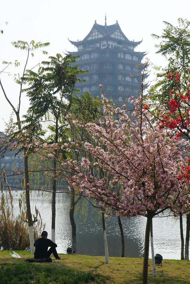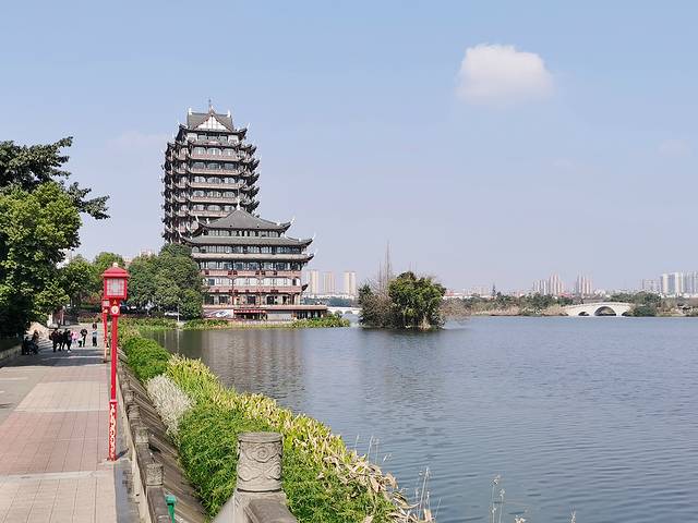 回到街对面的东坡城市湿地公园,我还是喜欢看景,特别是从远处瞭望远景楼。