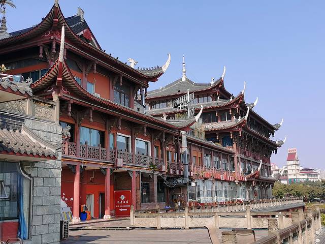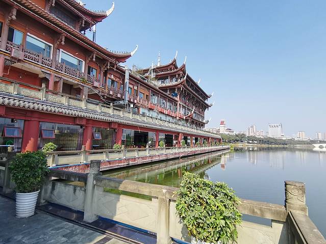 我在近距离观赏和登临了远景楼,体验了苏轼当年“登临览观之乐,山川风物之美”意境后,又在远景楼所在的东坡城市湿地的两期公园里实地绕行浏览了一圈,还造访了紧挨着湿地的“东坡里”商业水街,感到湿地和水街颇有当年宋朝的强盛文明之风采。