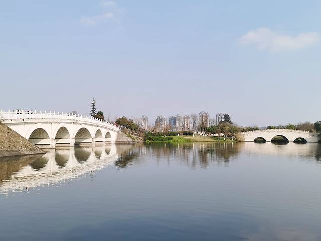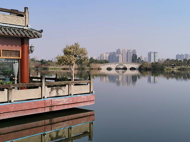 今天因时间关系,没有到各个角落详细观赏东坡城市湿地公园。可以说,两期东坡城市湿地公园加起来面积很大,占地面积964亩,是以"东坡水月"文化为主题,集湿地保育、科文教育、游憩休闲功能于一体的城市湿地公园,是目前西南地区最大的城市湿地公园。它们与湖面和岷江接壤,与周围其他公园和湿地相邻,例如北边有苏洵公园、诗书城公园、苏堤公园、东坡竹园、苏轼公园和苏澈公园,南边有东坡金城、三苏祠、南湖公园和苏母公园,东边有滨江公园和蟆颐观等。网上称,眉山号称“千湖之城 百园之市”,那确实不是吹的,早在2016年,眉山就已建成公园118个,人均公园绿地达到12㎡/人。到2030年,眉山将建设各类公园262个,实现“一镇一园”目标。