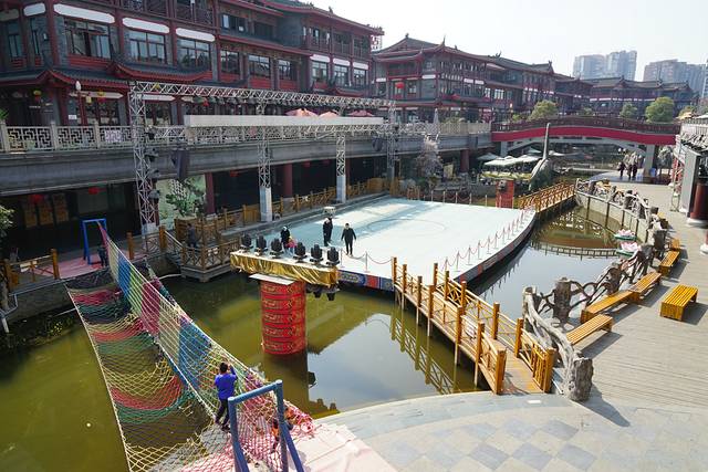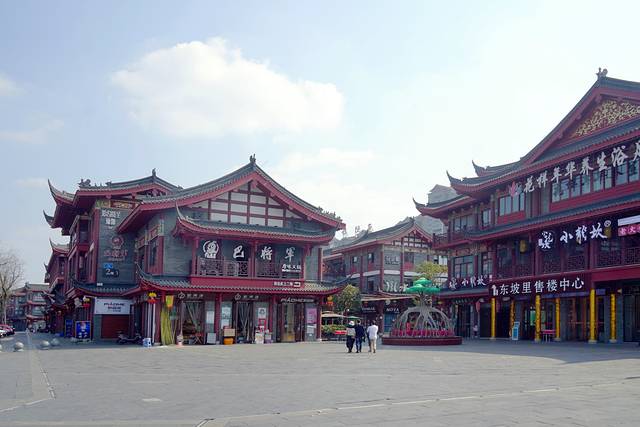 这里有个“东坡里”商业水街,把传统文化、现代科技和休闲娱乐融为一体,形成一站综合消费的场所。