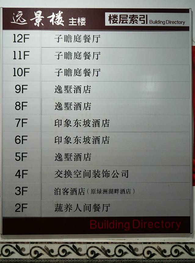 导示图介绍说,远景楼主楼共13层,但是后来我上电梯看到只有12层。每一层不是酒店、餐厅,就是公司,好像没有设专门供游客登顶的平台。