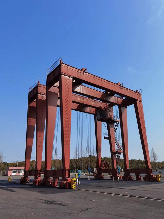 三是老码头。园内有个原红双喜船厂的老码头,这个码头也被完好的保留了下来,现在成了停车场,码头上的双轨大吊车也成了公园内的标志性景观。