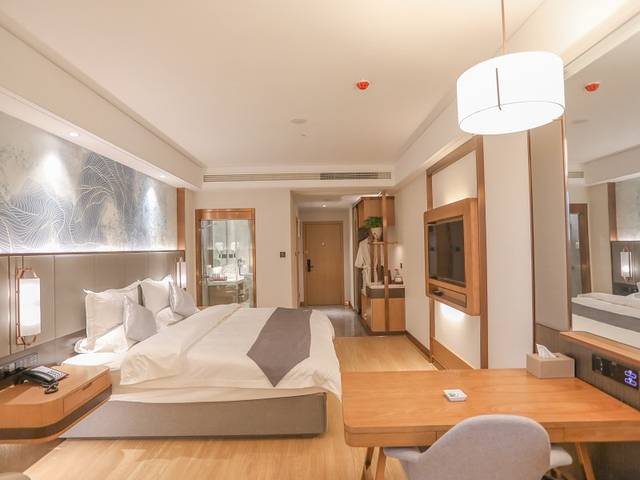 酒店幽静舒适,客房里设计师利用装饰形态与色彩拉开层次,使得空间拥有多元化的呈现,客房里配设齐全,空气能热水循环系统、智能门锁、独立式中央空调是游乐园疯玩后的舒适休息之所。