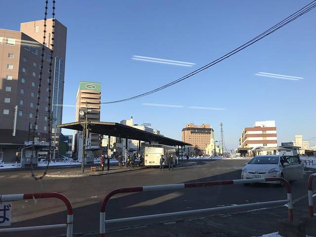 我们乘坐的道东三湖的阿寒巴士发车站台是15号,在站台就可以看到我们住的酒店,绿色楼顶的便是