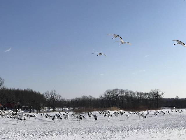 位于鹤居村的鹤见台主要是仙鹤的喂食场所,生活在这里的野生动物保护者渡部女士从1963年开始,每年的11月至次年的3月上午10点至12点进行一次喂食,现在由她的儿子做这项工作