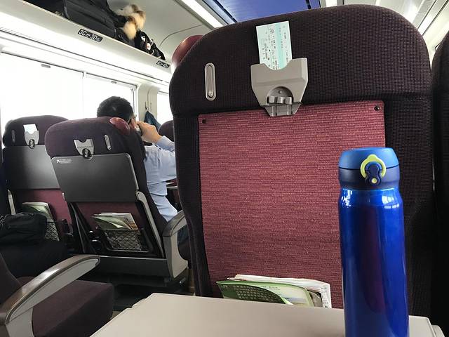 JR上的座位空间还是很宽敞的,比国内的二等座座位要宽敞、在每节车厢的前后都有行李架放置大件行李箱