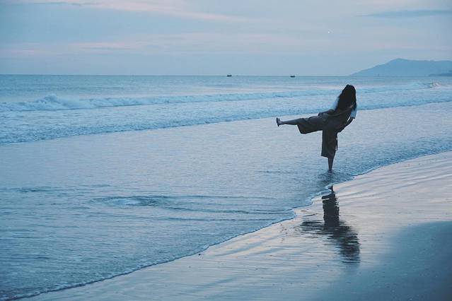 理想中的海边就应该这样,并不会太多人,淅淅沥沥的。可以对着天空放空,可以对着镜面的海水发呆。
