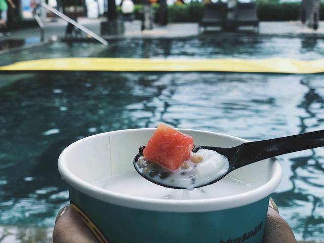 我这次旅程总共喝过2次,第一次是在泳池边,朋友开车打包送来的一季清凉。在泳池边喝反而提升了逼格。看着泳池的蓝色倒影干了手中的饮品有些微微美妙。