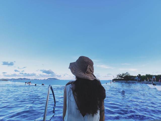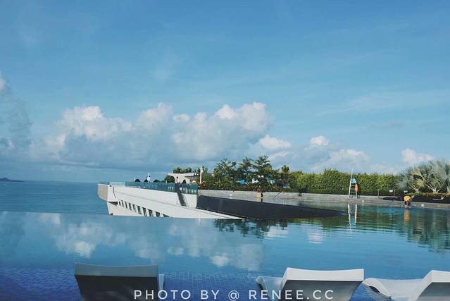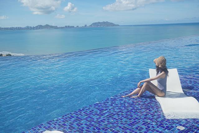 海岛必备的无边泳池,倒映最蓝的白云。
