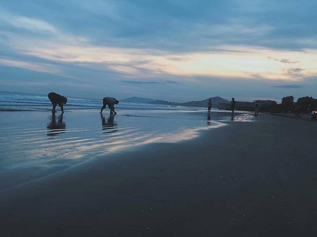 在离开之前终于邂逅了一场并不算五光十色的夕阳,在海边漫步奔跑,看到在海边赶海捡虾贝的人,画面很温柔。