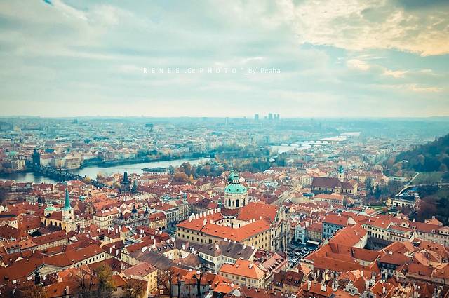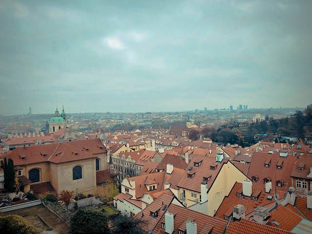 一场星爸爸出来发现天开始微微变蓝。蓝天实在跟橙色房顶很配。远远看到查理大桥,要去走九次呢。