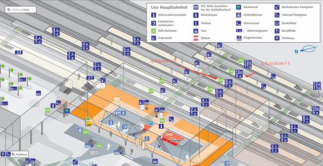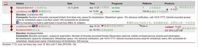 OBB有app,感觉手机定更快更简洁,推荐~从哈尔施塔特到布达佩斯选择到是奥铁,需要换乘一次。预定之前很是担忧自己会不会不知道在哪儿下车,其实有了app发现做的特别好,它会实时的更新你还有多少分钟下车,在哪儿哪儿换乘,完全不必担心。页面非常的清晰。以下是henry小哥哥担心我看不懂英文给我做的备注,啊呀虽然app在手很稳了,但是收到这个图的时候还是明晃晃的暖心啊。会比较有底不怕赶丢了,无私将图奉上,希望能有用得到的小伙伴