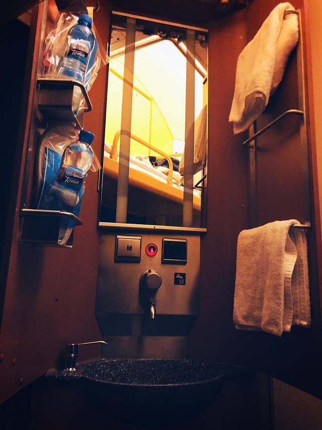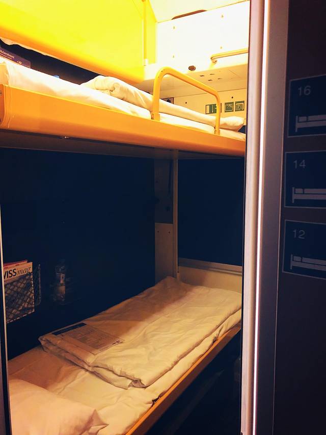 选择CD是很意外的事,本来是考虑布达佩斯飞布拉格的,机票不贵,但是都不含行李,单买行李的价格比机票贵,想想也不是很划算,就说体验下大巴,但是大巴的座椅好像并不能完全躺平让我有点纠结,然后大巴的时间是晚上十一点。在欧洲居然谨小慎微的开始考虑安全问题了,最后还是选择时间最最好的捷克铁路。因为是晚上所以定的卧铺~出乎意料的优秀,2个人定的小包间,2人间有房卡、洗漱台在包间内,有拖鞋有耳塞等非常的人性贴心。早上会有闹钟铃及人工敲门叫醒服务。