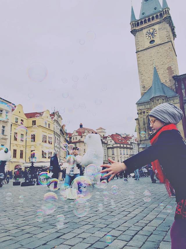 有广场就不缺泡泡,布拉格的石板路是遍及全城的,所以拉杆箱的小朋友们真的是会旋风哭泣。