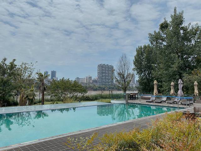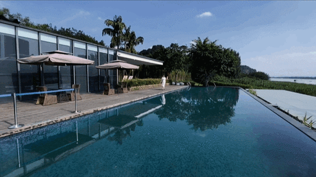 大堂旁就是颜值担当临江无边泳池了,盛夏畅游山水之间,或是在岸边喝一杯小酒,都是再惬意不过的事了~😉