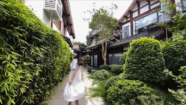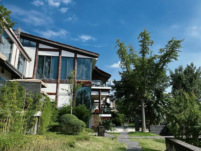 出门去院子里逛逛,亭阁古木玻璃房,处处是心怡小景。